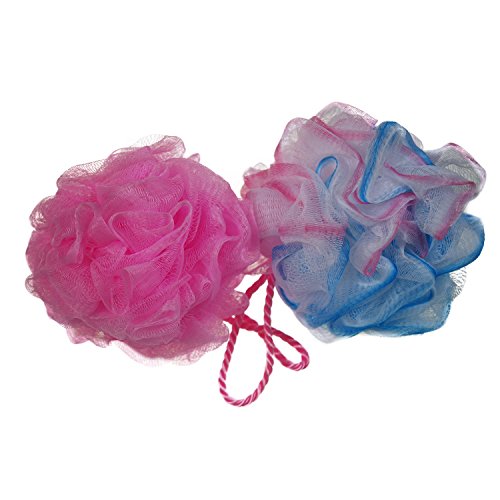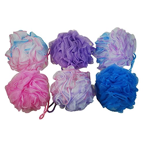-. Feature : Great for exfoliating! Soft to the touch, but rough enough to give you smooth, silky skin! / Quality material that looks beautiful, holds up and creates great lather. / Large size (50 g), so you can easily hold and scrub. / Attractive, longer, durable handle to place hand through for scrubbing and hang to dry in bath or shower. / Six (6) beautiful colors (1 of each shown), something for everyone in the household.