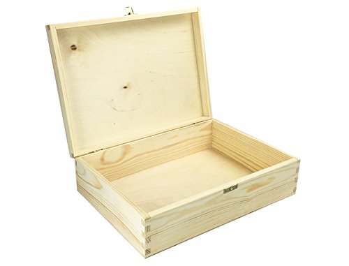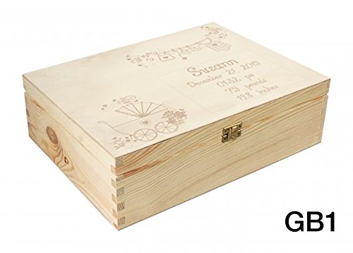 Useful, medium wooden gift box with hinged lid. This beautiful and customized box is a perfect gift for baby showers, new births, christenings or for other kinds of celebrations. This keepsake box is a wonderful place to keep your baby items, ?like the first romper suit, first pacifier etc. Please add?your custom information?(name, date of birth, etc.) by clicking the yellow 'Customize Now' button. The box measures: outer dimension, with lid: ???????? ca. 13.31?x 9.76?x 3.94?inches. inner dimension, without lid: ? ? ?ca. 12.60?x 9.02?x 2.76?inches. material: natural untreated pine Please be aware that the wooden boxes?we use are?a natural product and therefore may?contain knots and variations in colour, this adds to their charm. 0 |