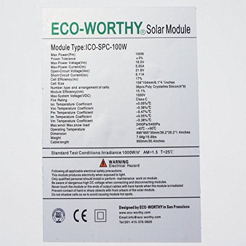 ECO-WORTHY 100 Watts 12 Volts Polycrystalline PV Solar Panel