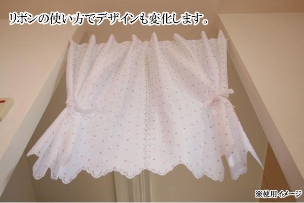 お手持ちのポール(つっぱり棒)にかけてお使いいただくタイプです。優しい水玉柄のやわらかい素材で作ったドレープのきれいなスタイルのれんです。リボンの使い方でデザインも変化します。 |