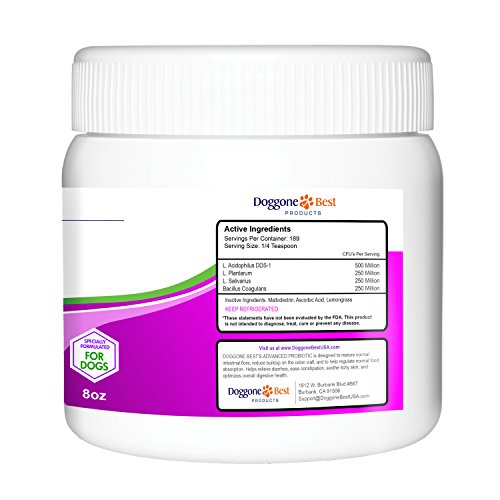 -. Feature : 100% ALL NATURAL, GRAIN & GLUTEN FREE, NO SOY, SUGAR, OR FILLERS so your pet will be getting over 1 billion pure, live active cultures in our supplement to help fight off infection and disease. Optimize their digestive tract with the benefit of a safe, natural alternative to prescription medication. Fight back against nausea, vomiting, loose stools & constipation. Perfect for after a round of antibiotics to restore intestinal flora and replenish the "good" bacteria. / TASTELESS AND ODORLESS; simply sP.R.Inkle into your pet's food, they'll never know it's there and eat it without any issues. No need to worry about your dog not liking nasty tasting chewable tablets or capsules. / ONLY A SMALL DOSAGE IS NEEDED; each container lasts several months saving you money. / This is MADE IN SMALL BATCHES in a GMP-certified facility; stays fresh and won't clump or harden; just keep refrigerated. / HOLIDAY DEALS - Be sure to check out our current deals below under "Special Offers & Product Promotions"