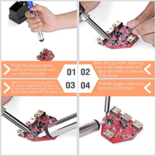 Special design and convenience-- Compact and Lightweight Right or Left handed design allows easy one-handed use. Very good desoldering tool to desolder circuit boards. Replaceable non-stick nylon tip. Best for removing solder from PCB through-hole solder joints