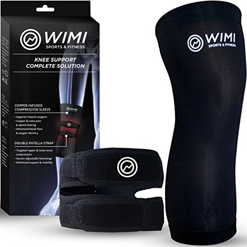 -. Feature : ✅ WIMI TOTAL KNEE SUPPORT SYSTEM INCLUDES: (1) Double patellar tendonitis brace and (1) Copper Infused compression knee sleeve (88% copper-infused nylon with 12% supple spandex). Suitable for Men or Women. Get everything you need together in one package for the ultimate knee recovery solution. / ✅ KNEE PAIN RELIEF AND PREVENTION - Our unique set provides targeted quadriceps misalignment support which you won't find in other brands. Support your knee and patellar tendon during sports activities, walking and exercising. Helps with various knee issues such as jumper's knee (patellar tendonitis), Osgood-Schlatter's disease, chondromalacia, ostheoarthritis, and runner's knee. / ✅ COMFORTABLE ENOUGH FOR ALL DAY USE - Lightweight and easy to wear under clothes, your active lifestyle demands gear that WORKS AS HARD AS YOU DO. Made out of soft, breathable fabric and padding for extreme comfort. The Wimi Knee solution offers unlimited range of motion so your muscles can continue to strengthen and heal while you use it. / ✅ HIGH PERFORMANCE + FANTASTIC VALUE - Let's face it, You are here because you want the best knee support system available. Our introductory P.R.Ice is throwing in our BONUS copper compression knee sleeve (Reg $16.99) AND a 21 page knee health guide e-book (Reg $8.99). Customize your healing with the most inclusive package and use what you need when you need it! / ✅ 100% MONEY BACK GUARANTEE - In the very unlikely event you don't absolutely love our combo set for any reason whatsoever, simply contact us and we will refund the full purchase P.R.Ice NO QUESTIONS ASKED! Guaranteed not to move or slide down, we are confident you will be A NEW YOU minutes after receiving your wimi knee brace and sleeve set! Try a set today RISK FREE and see for yourself!