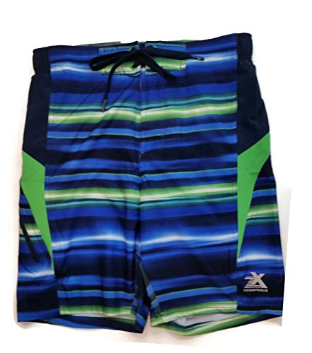 Binding : Misc. Product Description ZeroXposur Men's Blue and Green UPF 50 UV Protected Swim Shorts with side and and secret Pockets. These stylish swim shorts are made of 92% Polyester, 8% Spandex. Comfort and style plus in a swim trunk with four-way stretch quick-drying fabric featuring partial-elastic waistband with lace-up front with Mesh lining. Machine Washable Made in China 0