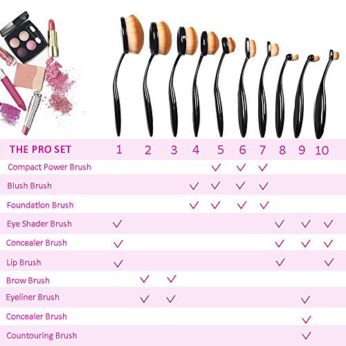 - ***10 PIECE SET: This 10 piece makeup brush set includes all of the cosmetic brushes you need to create flawless looks each and every day! Each set includes: a powder brush, blush brush, large and small foundation brush, crease brush, concealer brush, large and small eye shadow brush, a tapered blending brush and a flat blending brush.