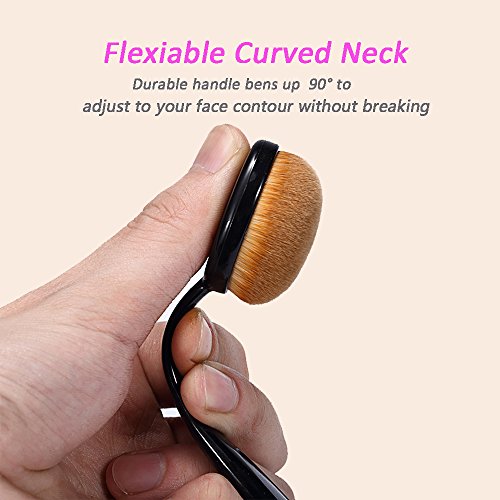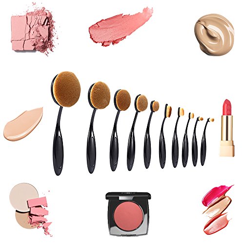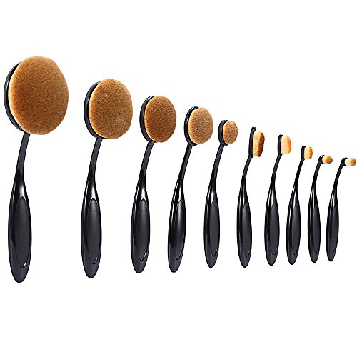 Oval Makeup Brush Set 10 Pcs Professional Foundation Cosmetic Brushes Soft Toothbrush Shaped Design For Foundation, Concealer, BB cream, Powder (Black)