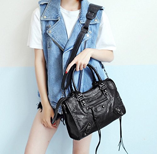 Product Description Top Zipper Closure Mini Size: About 24cm (W)x 15cm(H)x 11cm(D)/9.4in (W)x 5.9in(H)x 4.3in(D) Small Size: About 30cm (W)x 22cm(H)x 11cm(D)/11.8in (W)x 8.7in(H)x 4.3in(D) Shoulder belt: about 10cm high, with a long shoulder Inside: 1 zipper pocket and 2 open pocketes; Outsize with 1 zipper pocket. Material: Faux Leather/ PU leather Color available: Black/ Rose / Purple /Blue 8colors Type :Shoulder Bag/ Cross-body Bag Packing List:1 x Bag