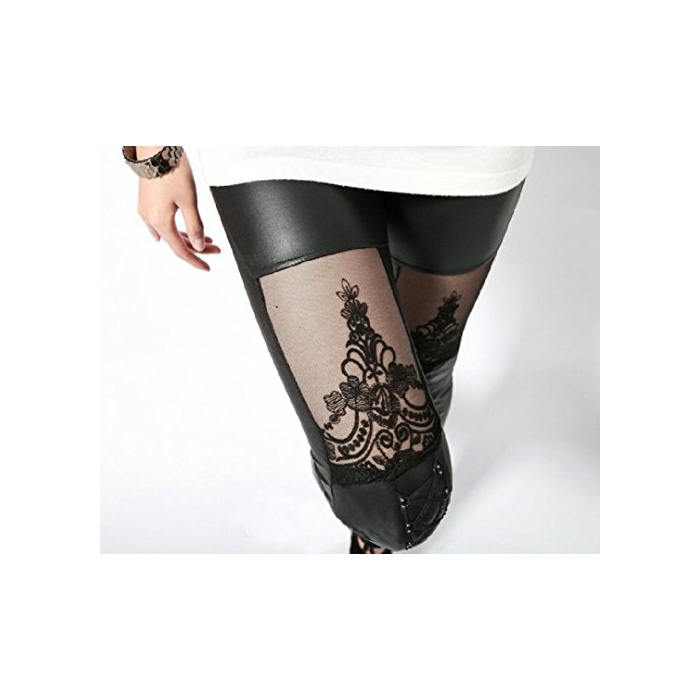 Zeile's 【Zeiles】 뜨기 인상 고스로리 희계미각(아름다운 다리) 레깅스 페이크 레더 덤 첨부