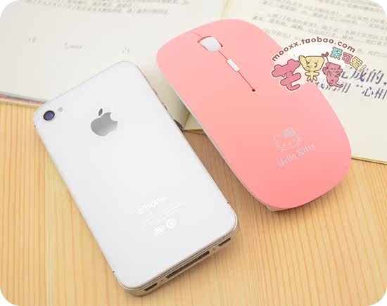 The mouse is a classic slim shape, is glossy white, pink is a matte surface.
