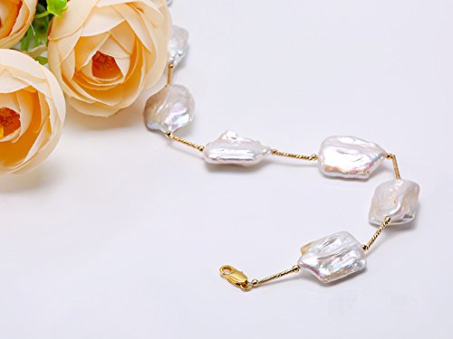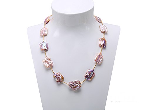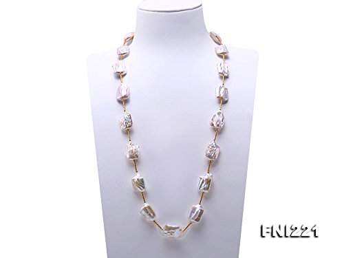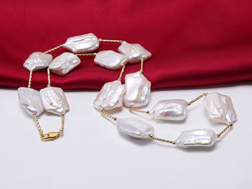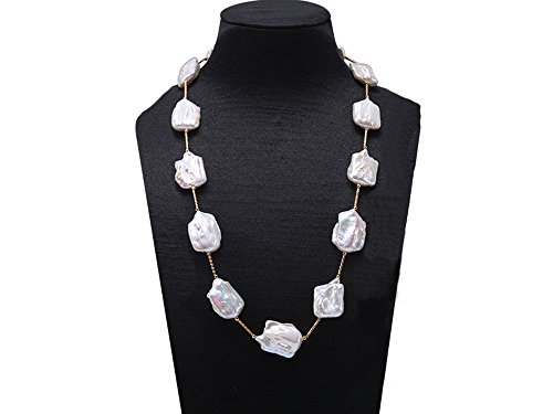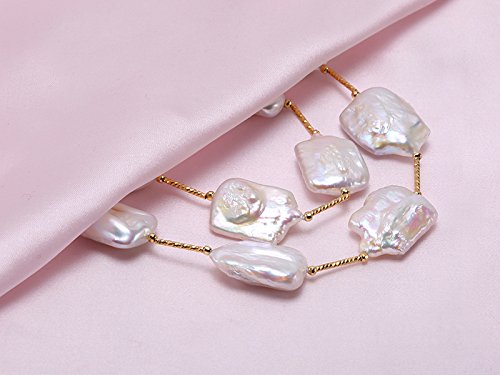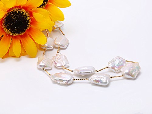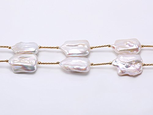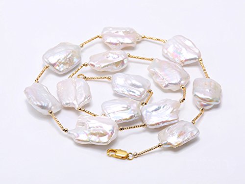 Description *Chic 16.5×21-22×30mm white baroque pearl necklace. Irregularly-shaped freshwater cultured pearl pieces are selected for this pearl necklace and alternated with gilded copper tubes and beads.