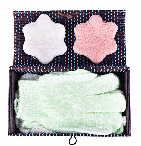 Exfoliating Glove Konjac Facial Sponge Mothers Day Gift Set - Holiday Gift Bath Accessories For Normal Sensitive Oily Acne Skin Gentle Face Scrub...