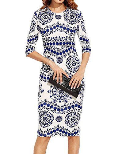 -. Feature : Features: slim fit pencil dress, rounder neck, 3/4 sleeve, vintage blue and white procelain P.R.Int ,knee length dress. / Design: slim fit show the beauty of your curves., make you more charming and chic. / Occasion: suit for Business, Evening Party, Cocktail Wedding and Daily wear. / Measurement: please refer to our size chart carefully before ordering, you can choose a similar cloth to compare the sizes. / Kindly noted that this product only sold by Locryz, our brand is the owner,other sellers is fake products and the quality is poor.