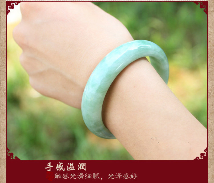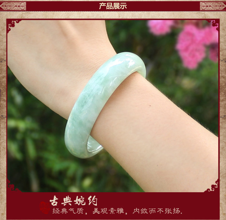 天然翡翠手镯冰糯种阳绿飘花玉镯子缅甸水润女款