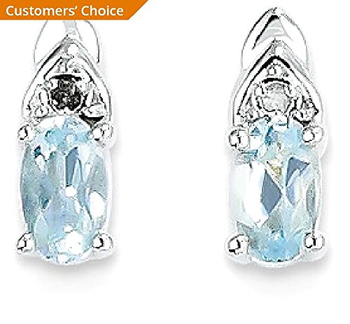 ICECARATS DESIGNER JEWELRY 14K WHITE GOLD BLUE AQUAMARINE DIAMOND POST STUD EARRINGS