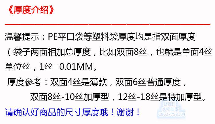 买前须知:这款规格后面写着的丝代表厚度,丝越多,代表袋子越厚!
