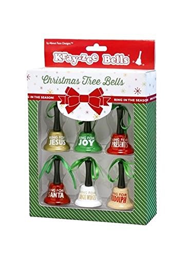 -. Feature : Six assorted bell ornaments in an attractive package. / Ready for gifting! / Metal and plastic construction / Each bell 2 1/2 " by 1 1/2 ". / Ring for Joy, Jesus, Presents, Santa, Angel Wings, Rudolph. Hang on the tree!