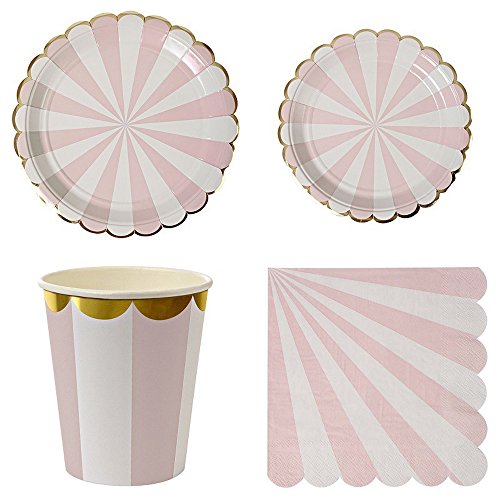 -. Feature : COLORFUL DESIGN: compact striped design,Gold Pressed process. 4 colors you can choose. Perfect table set on birthday party,your chidren must be like it / SAFETY:100% toxic-free, environment friendly.Convenient and portable / Birthday Party Tableware Kit for 16 Guests:(16) 7 Inch (18 cm) Paper Plates (16) 9 Inch (23cm) Paper Plates,(16) 9.5 oz (270ml) Paper Cups,(40) Napkins (13"x13") / Perfect Party Supplies Set: Suitable for putting slice,cakes,cupcakes,muffins,cookies,fruits etc. / WIDE APPLICATION: Birthday, Wedding,Nursery,Party,Festival,Thanksgiving Day,Christmas Banquet,BBQ and any other special occasions