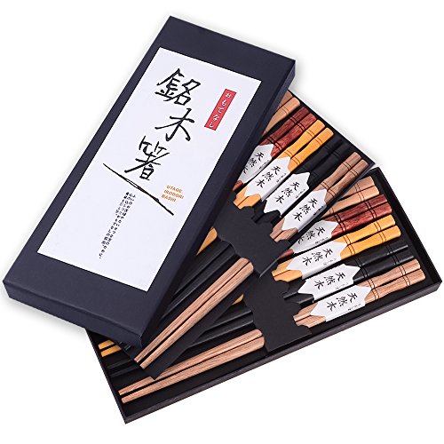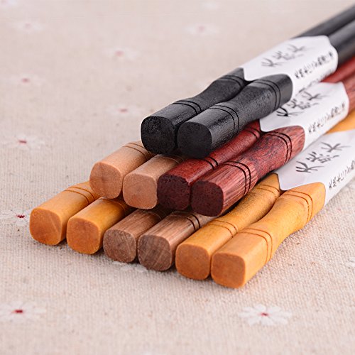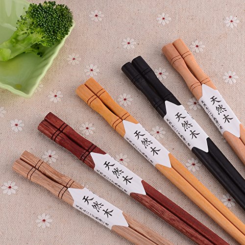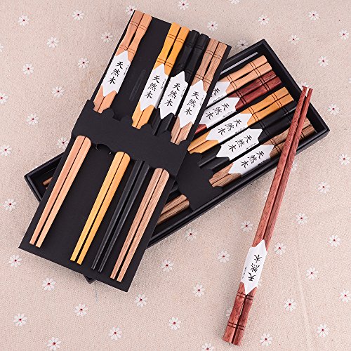 Zealor 10 Pairs Hardwood Chopsticks Set, Natural Wooden Chopsticks with 5 Assorted Colors