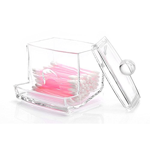 JWEST PREMIUM QUALITY DUST-PROOF CLEAR ACRYLIC SWAB STORAGE CASE, HOLDER ORGANIZER FOR COTTON SWABS BUD, Q-TIPS, MAKEUP PADS, COSMETICS BOX WITH LID - FOR BATHROOM & VANITY