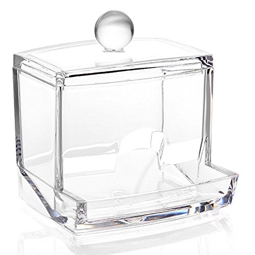 Sturdy, acrylic holder conveniently stores cotton balls, cotton swabs, makeup pads, makeup accessories, and many other items, Made from the highest quality shatter-resistant acrylic. Safer and better alternative to glass in the bathroom!
