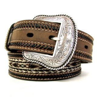 -. Title : Nocona Men's Brown Ribbon-Lace Belt