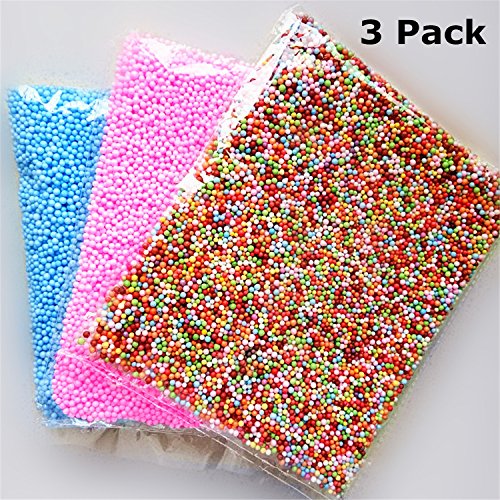 - PACKAGE INCLUDES - 3 pack (each bag with 15,000 pieces) colorful styrofoam balls, 0.1-0.18 inch foam balls, 1 x Assorted colors, 1 x Pink and 1 x Blue. And the color will not transfer to your slime.