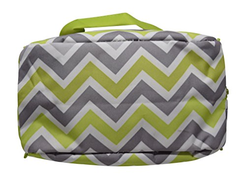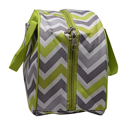 9 In Small Reusable Zippered Top Insulated Lunch Bag (Green/Grey Chevron)
