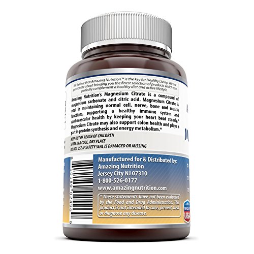 * QUALITY YOU CAN TRUST All Amazing Nutrition products are manufactured in accordance with Good Manufacturing Practices (GMP), among the highest standards in the world. Our product is free of preservatives, artificial colors and artificial sweeteners, making it a great choice magnesium citrate dietary supplement
