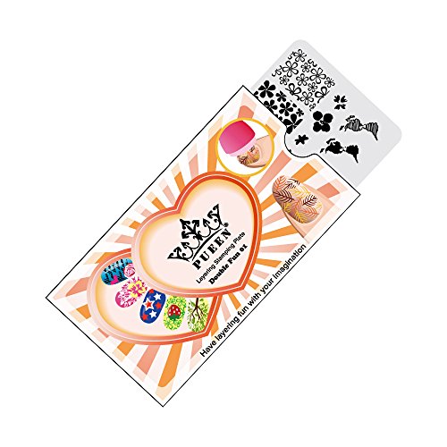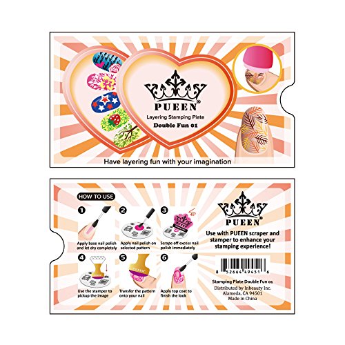 PUEEN Nail Art Stamping Plate -Double Fun 01 - Layering Collection 125x65mm Unique Nailart Polish Stamping Manicure Image Plates Accessories Kit -...