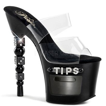 (Pleaser)/Women's/Sandals/DIRECT FROM USA/7 Inch RS Embellished Stacked Dice Heel, 3 1/4 Inch PF Slide (Clear/Black;7)
