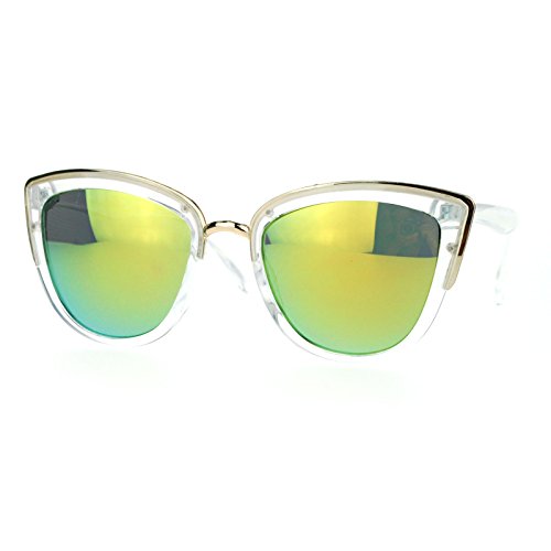 SA106 Womens Color Mirror mirrored Lens Oversize Cat Eye Sunglasses Clear Yellow
