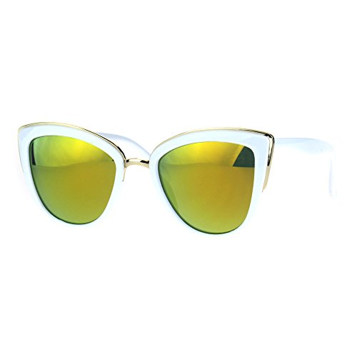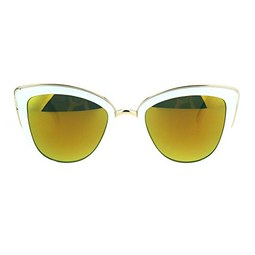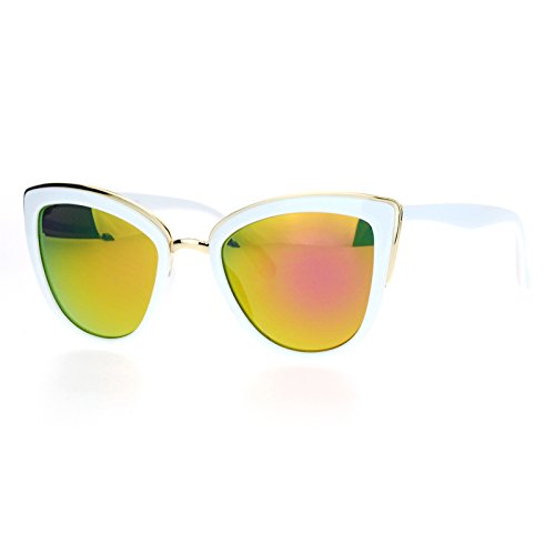 SA106 Womens Color Mirror mirrored Lens Oversize Cat Eye Sunglasses White Orange