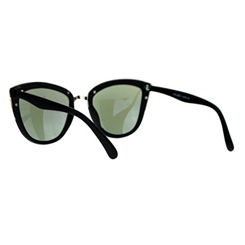 SA106 Womens Oversize Cat Eye Sunglasses Matte Black Silver Mirror