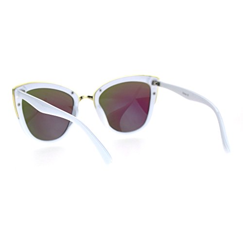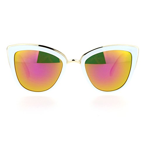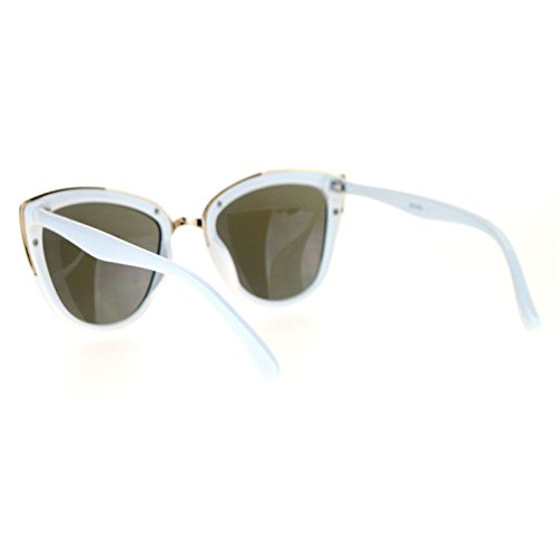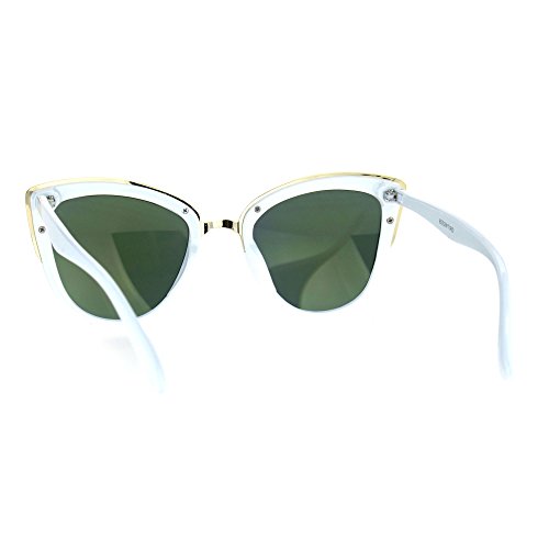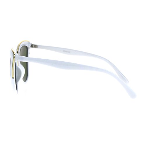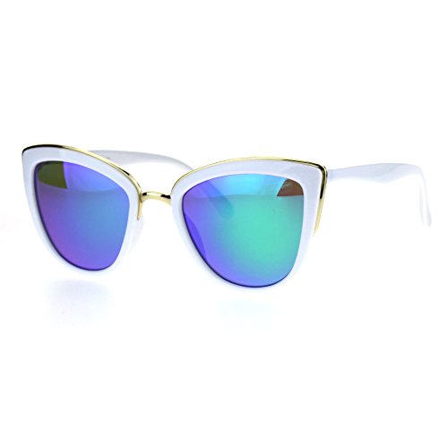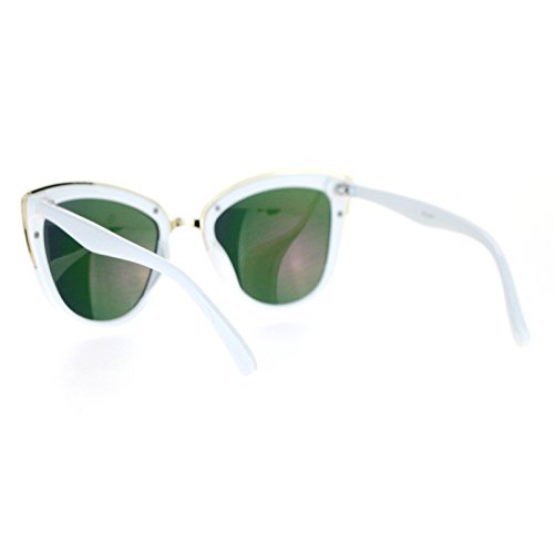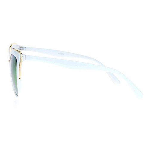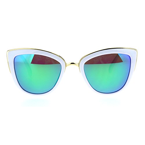 SA106 Womens Color Mirror Lens Oversize Cat Eye Sunglasses White Green