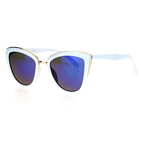 SA106 Womens Color Mirror mirrored Lens Oversize Cat Eye Sunglasses White Blue