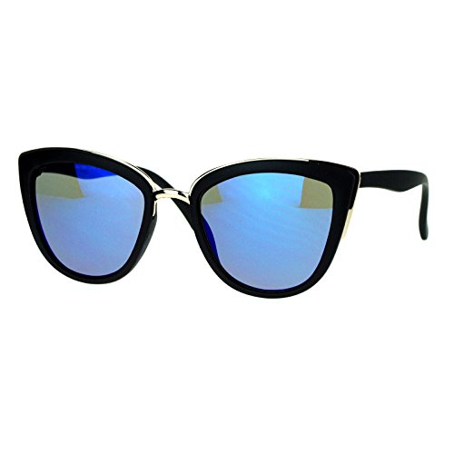 SA106 Womens Color Mirror mirrored Lens Oversize Cat Eye Sunglasses Black Blue