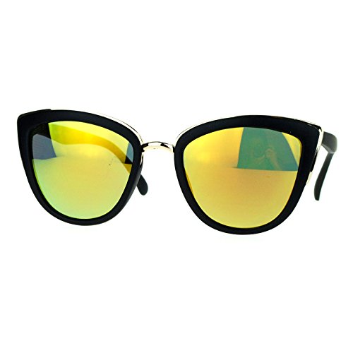 SA106 Womens Color Mirror mirrored Lens Oversize Cat Eye Sunglasses Black Gold