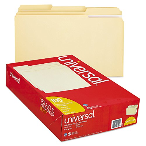 -. Title : Universal File Folders, 1/3 Cut Assorted, Two-Ply Top Tab, Legal, Manila, 100/Box (16123)