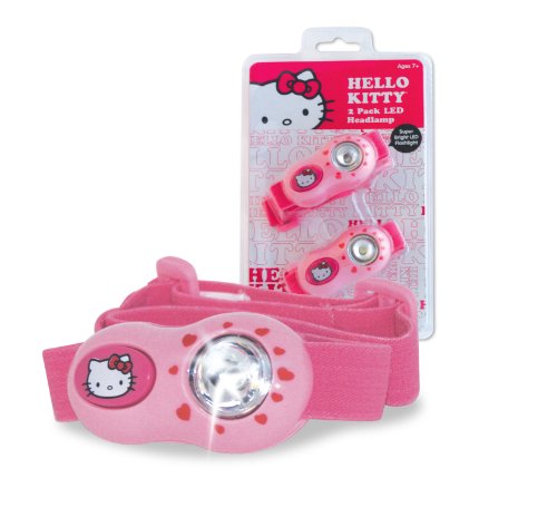 This Hello Kitty 2 Pack Headlamp comes with 2 headlamps and is great for kid's safety as it illuminates ultra-bright lights. It operates on batteries which are included. Each headlamp is decorated with colorful graphics and designed with an adjustable elastic band, which offers a comfy, custom fit.