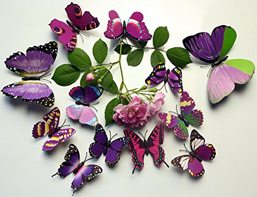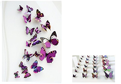 -. Feature : Totally 24 different models 3D butterfly stickers random mixed packing / There are magnet in the body of the crafts butterfly and item will come with special glue. / A perfect gift for any special occasions like Christmas, wedding, birthday, anniversary,engagement, new baby. / Perfect design. Roundly includes 4 large ones in size 11*9.5 cm, 12 medium ones in size 9.5*8.5 cm, and 8 small ones in size 4*4.5 cm. / The decal is PVC.So it's Removable, Durable, Pressure Resistance, Shock Resistance, Moisture Resistance