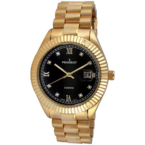 -. Title : [プジョー] Peugeot 腕時計 Genuine Diamond 14K All Gold Plated Date Stainless Steel Big Black Face Luxury Watch 日本製クォーツ 1053BK 【並行輸入品】