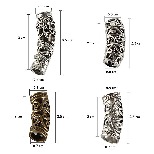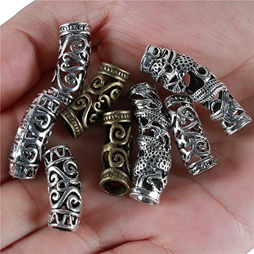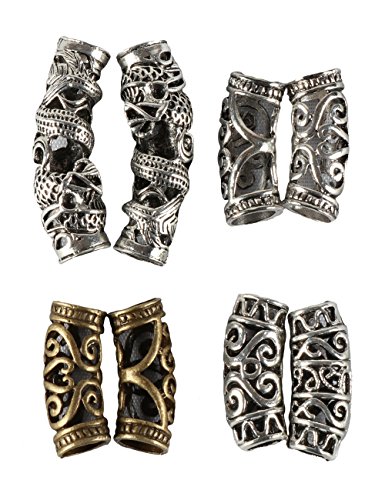 Fani 8 Pieces Hair Tube Beads Dreadlocks Beads Hair Braiding Jewelry Hair Decoration Accessories, 4 Styles, DIY Tibetan Silver