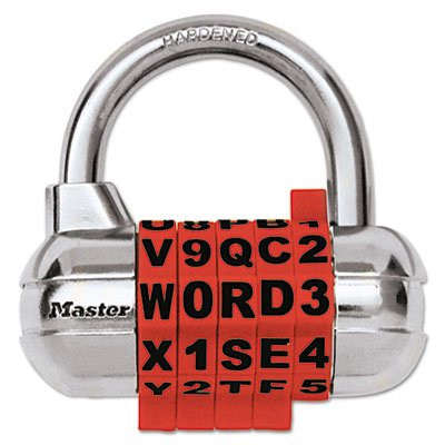 -. Feature : Combination lock with alpha-numeric (letters and numbers) password, removable combo wheels, easy-to-read numbers and a no-slip grip. / Combines letters and numbers to create an alpha-numeric password. / Removable combo wheels can be interchanged to create thousands of codes. / Easy-to-read numbers plus soft touch dials for a no-slip grip.