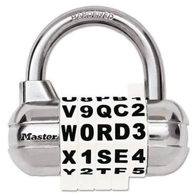 -. Title : Password Plus Combination Lock, Hardened Steel Shackle, 2 1/2'' Wide, Silver
