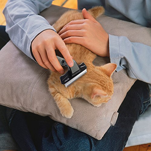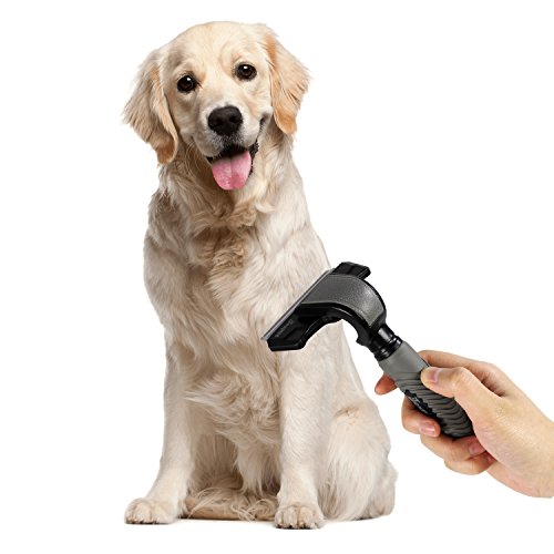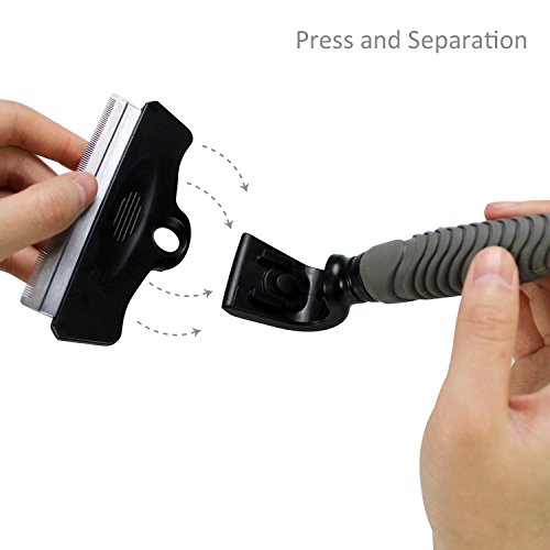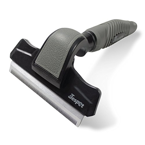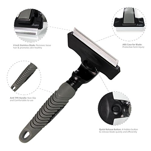 By reducing shedding up to 90%, JESPET Deshedding Tool enables you to share your home with your dog, without surrendering it to his hair. This tool is guaranteed to reduce shedding better than any brush, rake or comb. The stainless steel edge reaches deep beneath your dog's long topcoat to safely remove undercoat and loose hair. The deshedding grooming brush features a hidden button that can quickly and easily separate the brush blade from the handle. It's so easy to keep clean and well-maintained.Feature