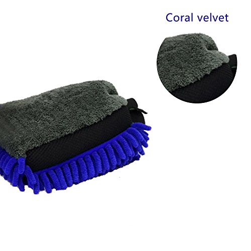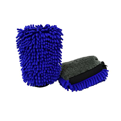 Crazy Store 2 Pack of Large size Premium Waterproof Microfiber Car Wash Mitts ,Dual-Side, Wet or Dry Usage, Scratch Free(Blue)