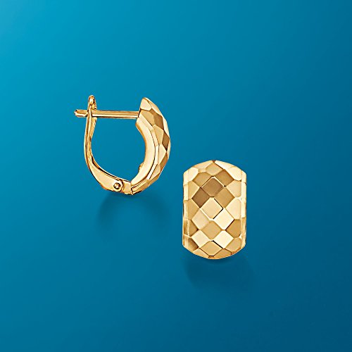 Ross-Simons is the authority on luxury classics. These half-hoop earrings are fashion classics, designed to keep the fashion fires burning! Features small diamond-cut designs. Hanging length is 1/2". Hinged post, 14kt yellow gold earrings. Each Ross-Simons item arrives in a fine jewelry presentation box. Shop Ross-Simons jewelry risk-free as all items include a 30-day, 100% money-back guarantee.Feature