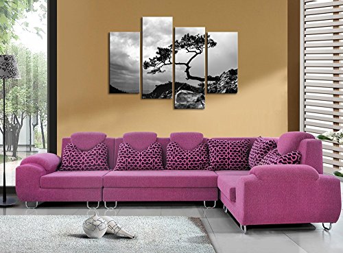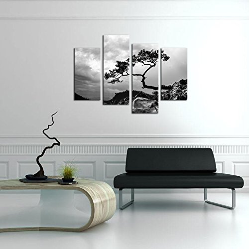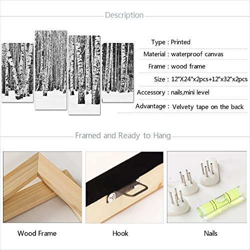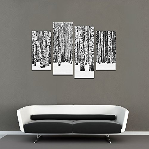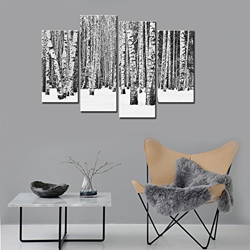-. Title : Sea Charm- 4 Panel Birch Tree Wall Art,Black and White Forest Pictures P.R.Int on Canvas,Home and Office Inner Wall Decor Artwork on Canvas,Winter Landscape Poster Ready to Hang