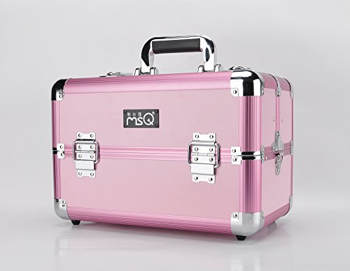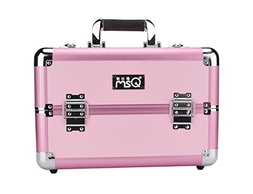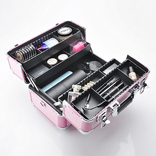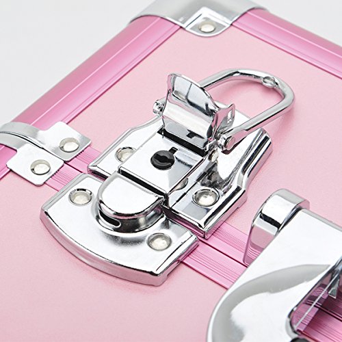 Makeup Train Case Jewelry Artist Organizer 14” Professional Cosmetic Box with 10 Adjustable Dividers 4 Trays and Key Lock (Pink)