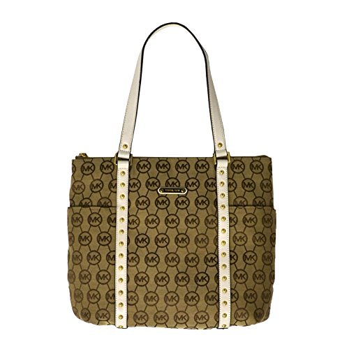 -. Title : Michael Kors Jet Set Stud Handbag Large Top Zip Tote in Beige Ebony Vanilla
